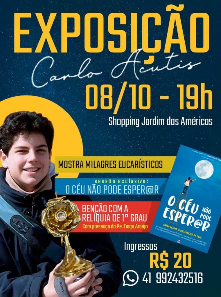 A noite começará com a exposição da mostra “Milagres Eucarísticos”, idealizada por Carlo Acutis, que destaca os principais milagres reconhecidos pela Igreja Católica ao redor do mundo. Em seguida, haverá a bênção com a relíquia de primeiro grau do beato, conduzida pelo Padre Tiago Araújo. O ponto alto do evento será a exibição exclusiva do documentário “O Céu Não Pode Esper@r”, que retrata a vida de Carlo Acutis e sua rápida ascensão à santidade.